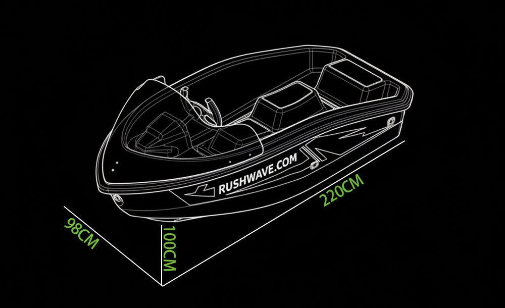 Precision-engineered dimensions of 220×98×100 cm ensure the perfect balance between stability and agility. The compact yet spacious design enhances maneuverability while providing a comfortable riding experience. Optimized hull proportions improve control on water, making the RUSH WAVE V1 ideal for both beginners and experienced riders seeking performance and safety.